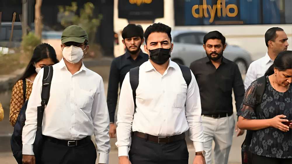 A thick layer of smog covered Bandra-Kurla Complex (BKC) in Bandra (East) on Thursday, prompting several office-goers to wear face masks while walking along footpaths in the busy commercial district. The haze continued to impact parts of Mumbai through the morning, with reduced visibility reported in the area. While hazy conditions are expected to persist during the day, visibility is likely to gradually improve as the hours progress.