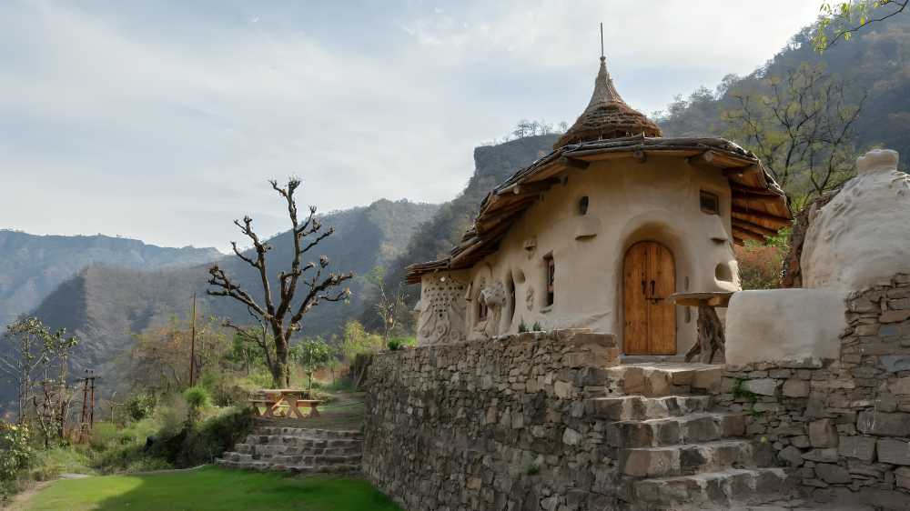 In another remarkable project, siblings Ansh Kumar and Raghav Kumar created a 600-square-foot home using mud sourced from the site itself. Built through a collaborative community process, the structure celebrates natural materials and handmade craftsmanship.